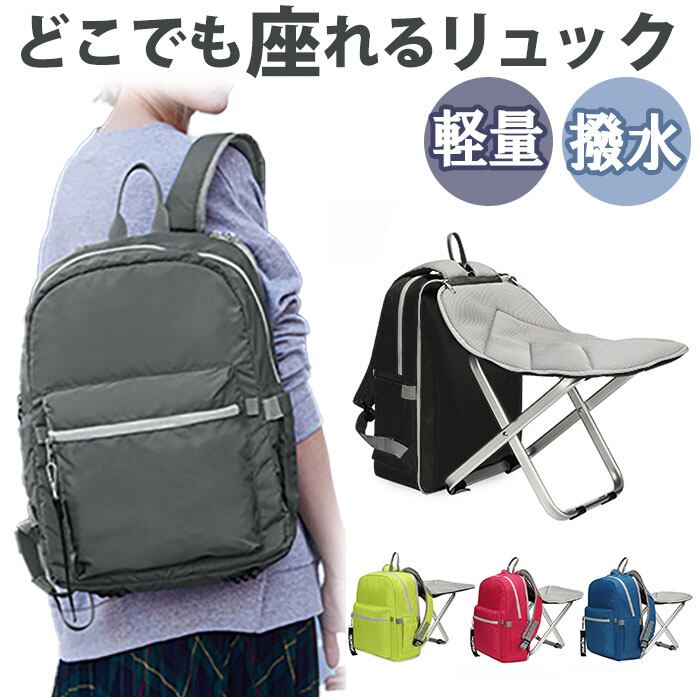 椅子付リュック 通販 リュック リュックサック デイパック バックパック バッグ バック 鞄 かばん カバン レディース メンズ 椅子になる 撥水 はっ水 軽量 折りたたみ チェアイン どこでも座れる 旅行 遠足 登山 アウトドア スポーツ 釣り 観戦 おしゃれ