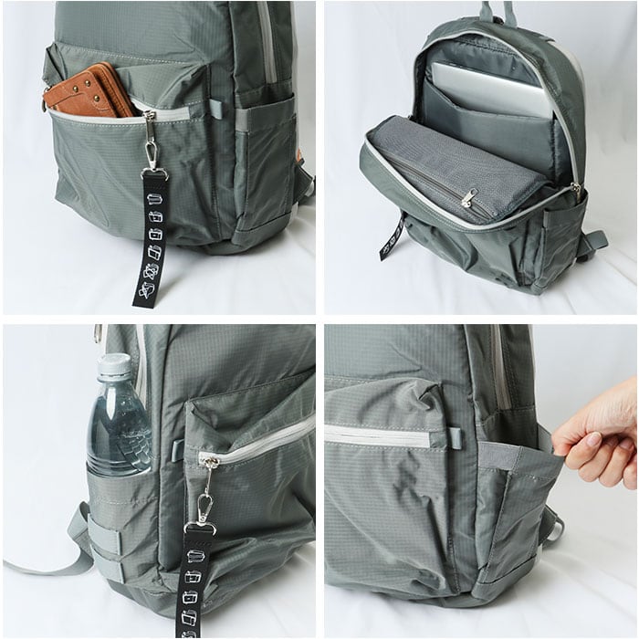 ・内側や外側には荷物を分けて収納できるポケットを多数配置。
