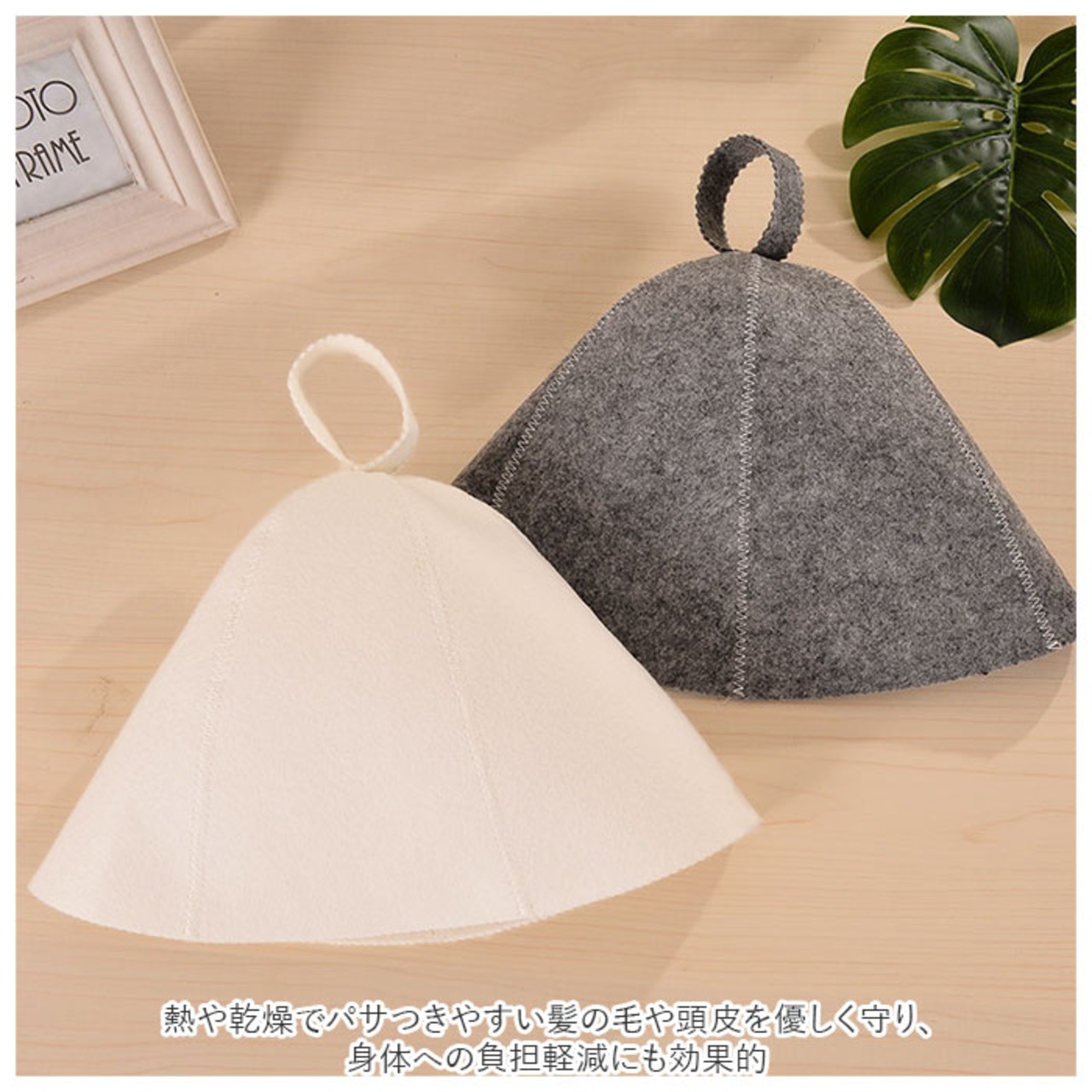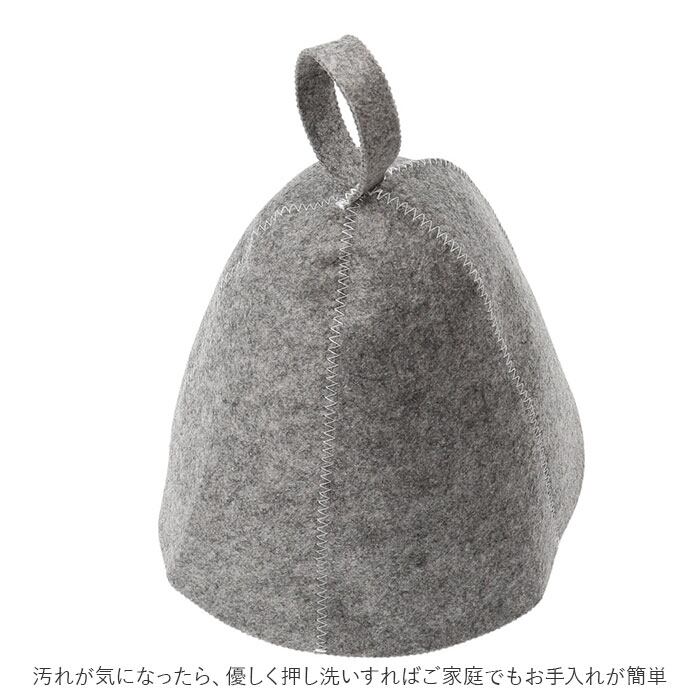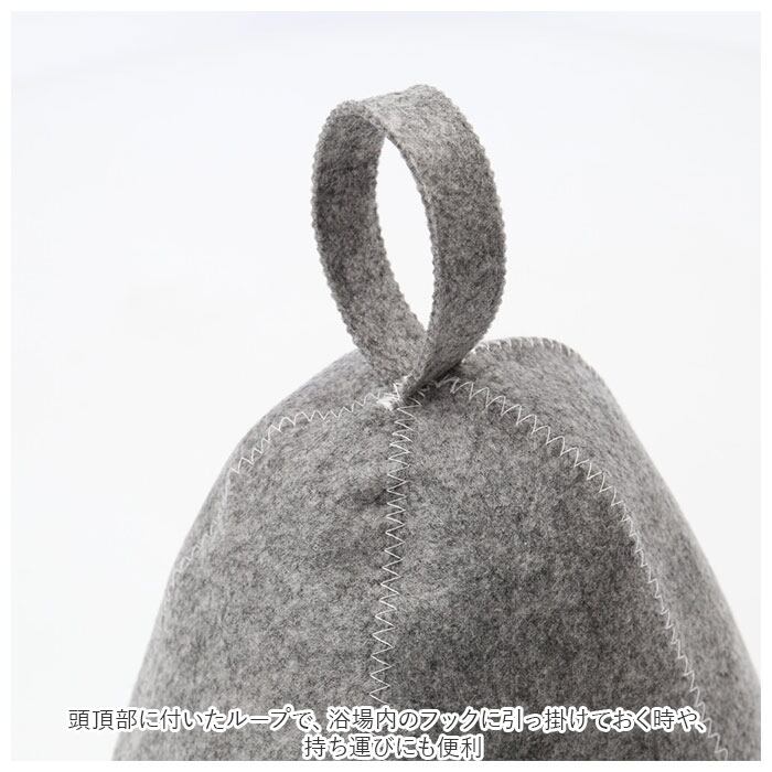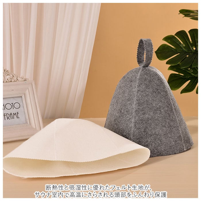 ・断熱性と吸湿性に優れたフェルト生地が、サウナ室内で高温にさらされる頭部をふんわり保護。