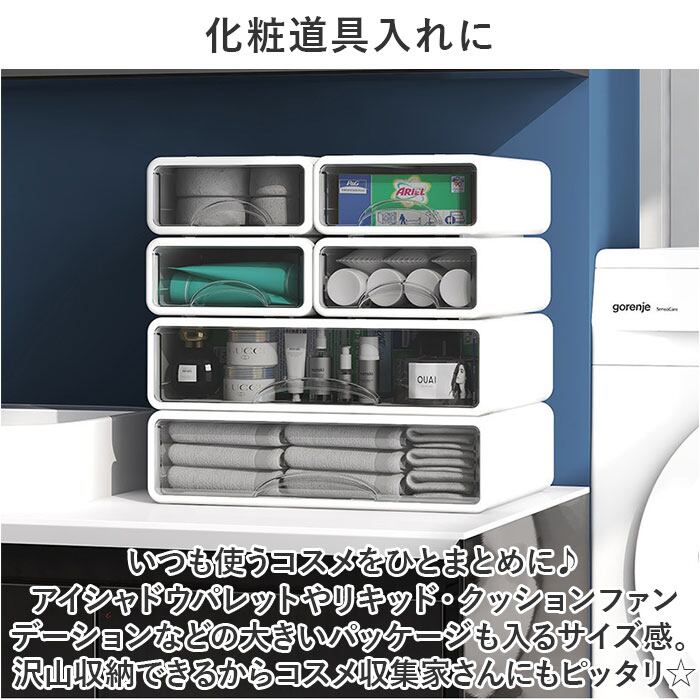 ・引き出し部は中が透けて見える、透明窓仕様。必要な小物をパッと見つけられる◎