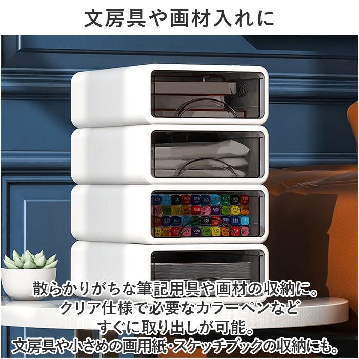 ・散らかりがちな筆記用具や画材の収納に。クリア仕様で必要なカラーペンなどすぐに取り出しが可能。文房具や小さめの画用紙・スケッチブックの収納にも。