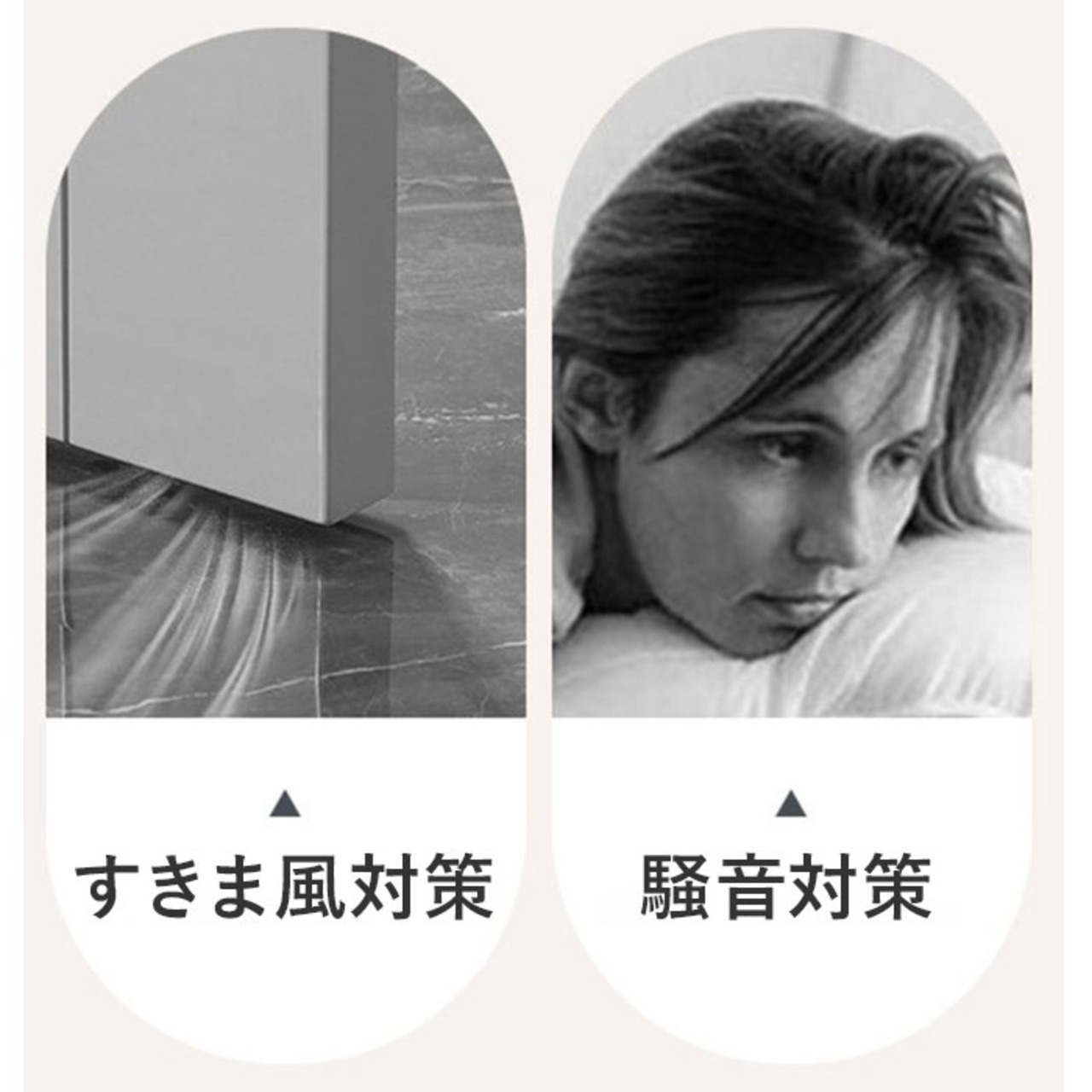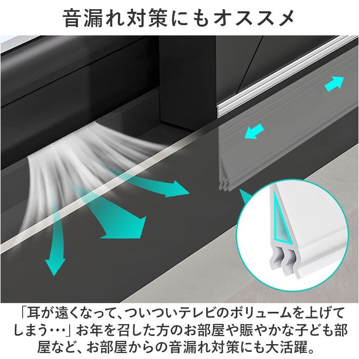 ・「家族の足音や隣室の物音が気になって寝付けない・・・」そんな時は、ドア下の隙間をピタッと塞いで騒音を軽減。最小限の手間で、快適なお休みタイムを実現。