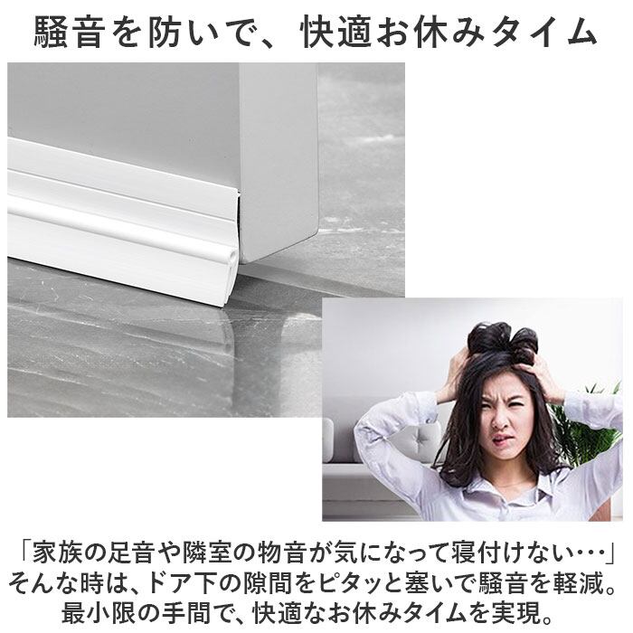 ・「家族の足音や隣室の物音が気になって寝付けない・・・」そんな時は、ドア下の隙間をピタッと塞いで騒音を軽減。最小限の手間で、快適なお休みタイムを実現。