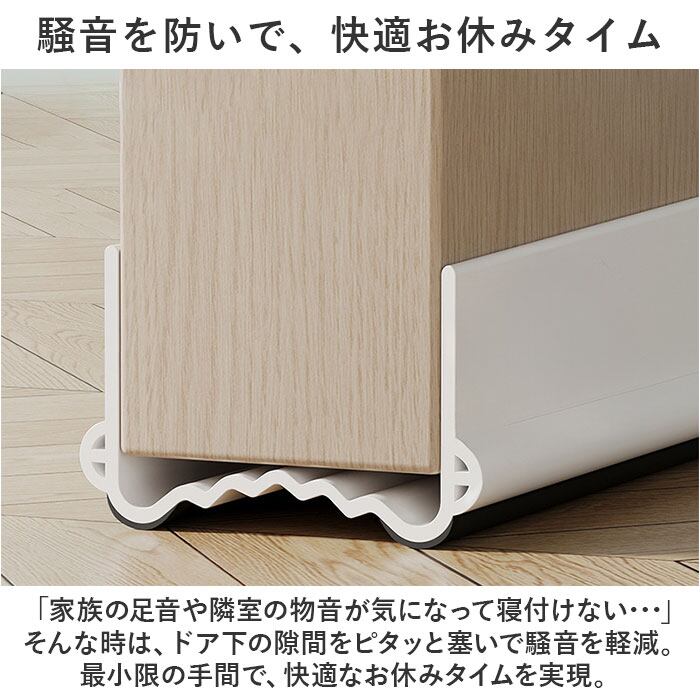 ・「家族の足音や隣室の物音が気になって寝付けない・・・」そんな時は、ドア下の隙間をピタッと塞いで騒音を軽減。最小限の手間で、快適なお休みタイムを実現。