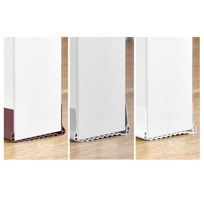 ・程よく伸縮性のあるPVC素材が、厚み約3.5cm~約5.0cmのドアに自在にフィット(※1)。ドア下端に当たる部分を波状に加工することで密閉性も確保。(※ドア下のすき間0.3cm~1.5cmに対応。)