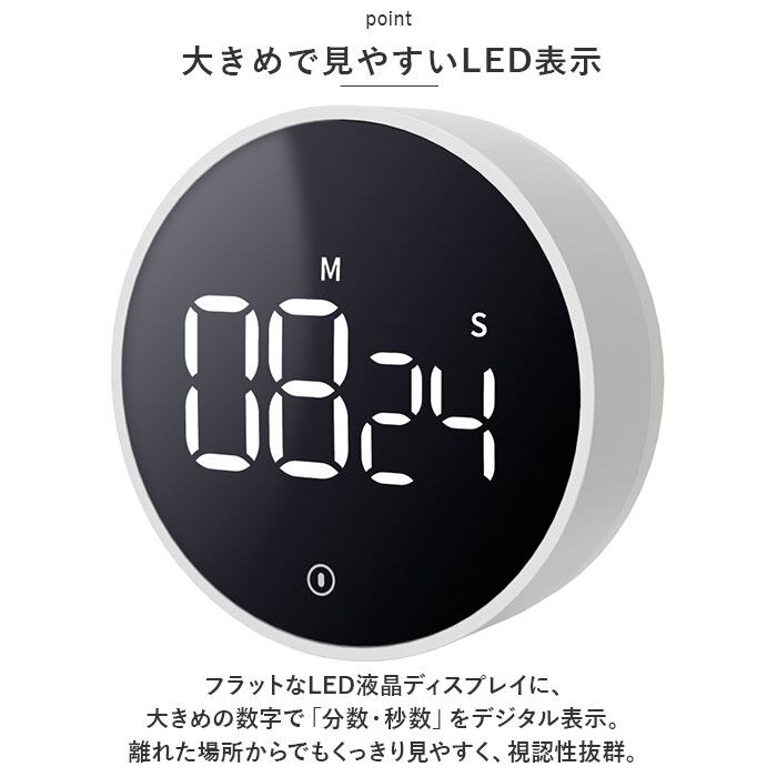 ・フラットなLED液晶ディスプレイに、大きめの数字で「分数・秒数」をデジタル表示。離れた場所からでもくっきり見やすく、視認性抜群。