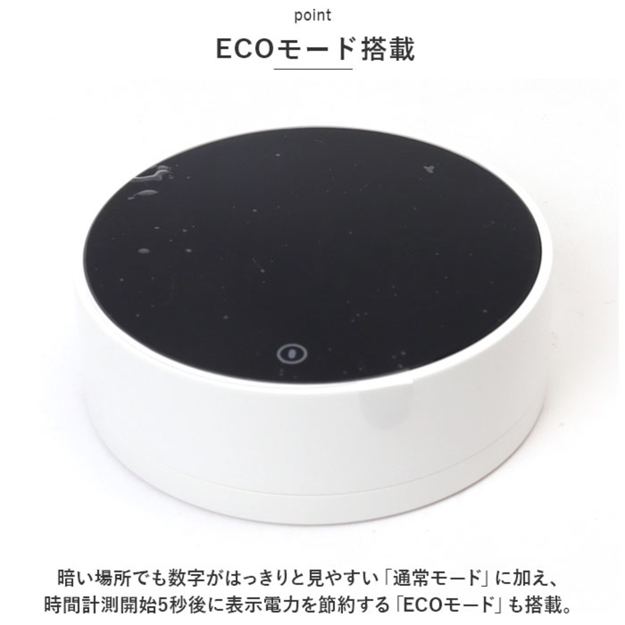 ・暗い場所でも数字がはっきりと見やすい「通常モード」に加え、時間計測開始5秒後に表示電力を節約する「ECOモード」も搭載。