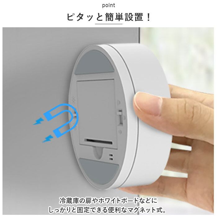 ・冷蔵庫の扉やホワイトボードなどにしっかりと固定できる便利なマグネット式。