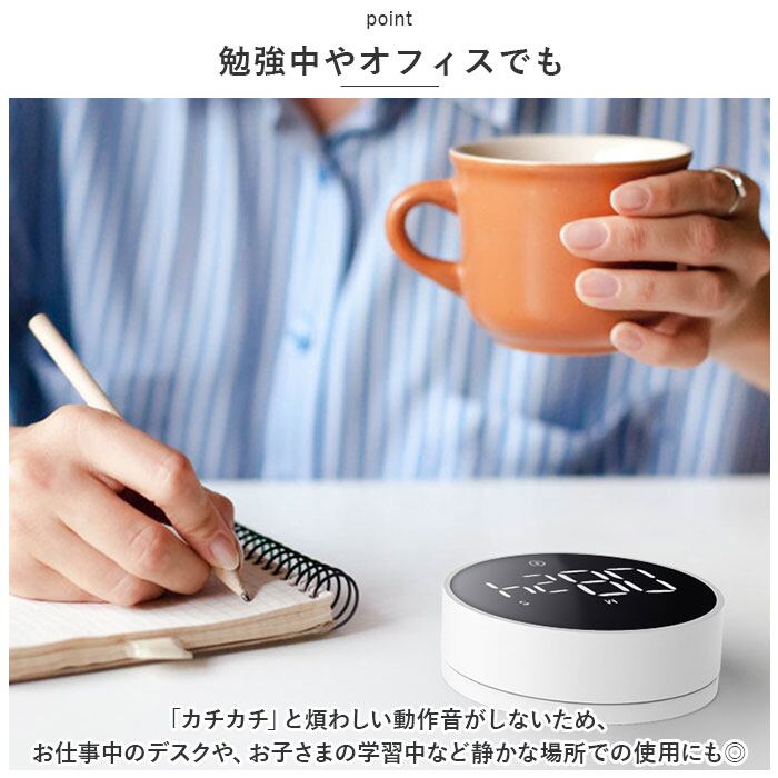・キッチンでのお料理中はもちろん、オフィスではプレゼンテーションやスピーチの時間計測など、様々な場面で大活躍。お子さまのゲーム時間の管理にもオススメ。
