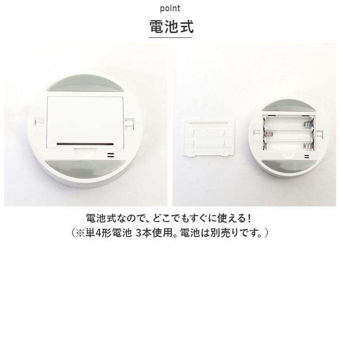 ・手のひらサイズのコロンと丸いカタチで持ち運びが楽ちん。電池式なので、どこでもすぐに使える!(※単4形電池 3本使用。電池は別売りです。)