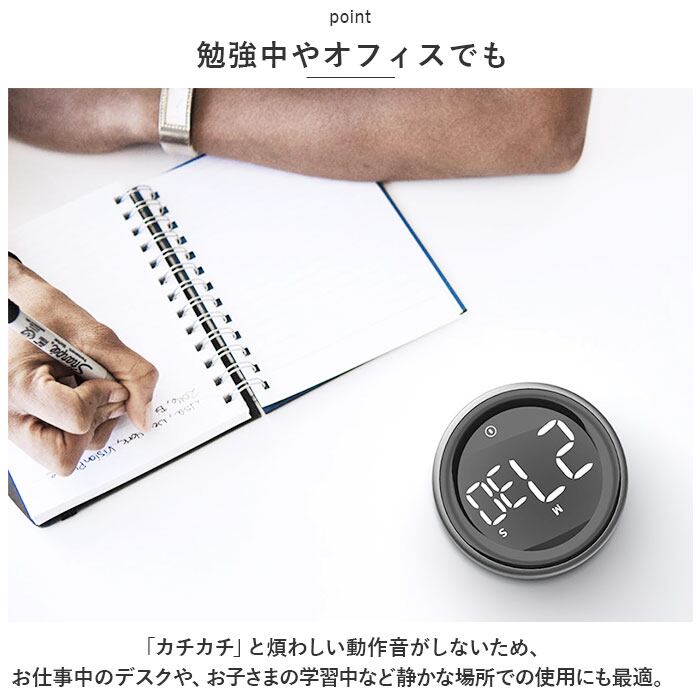 ・キッチンでのお料理中はもちろん、オフィスではプレゼンテーションやスピーチの時間計測など、様々な場面で大活躍。お子さまのゲーム時間の管理にもオススメ。