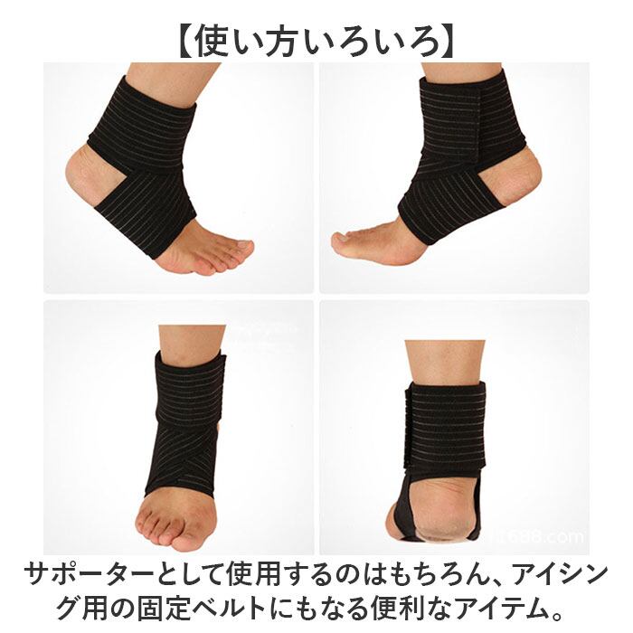・サポーターとして使用するのはもちろん、アイシング用の固定ベルトにもなる便利なアイテム。