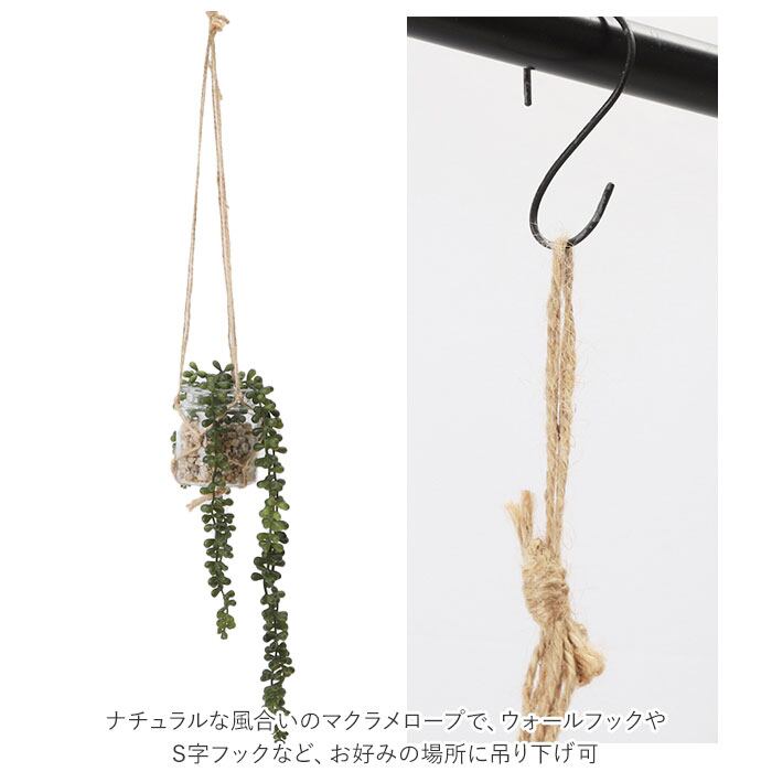 ・ナチュラルな風合いのマクラメロープで、ウォールフックやS字フックなど、お好みの場所に吊り下げ可能。