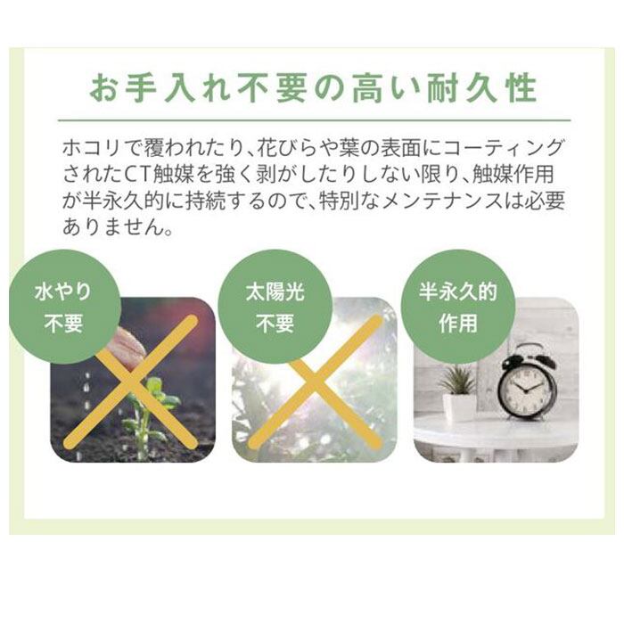 ・CT触媒は、ホコリに埋もれない限り半永久的に効果を発揮!光のない暗い場所でも効果が続くため、お手洗いや玄関に飾ってもOK!