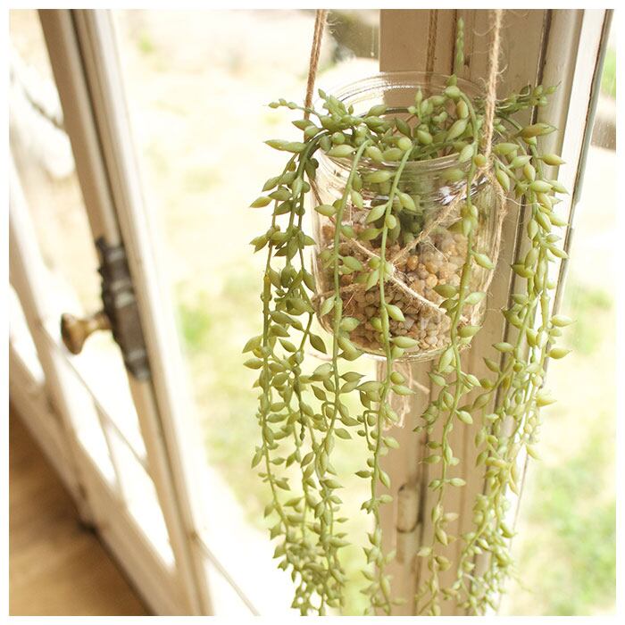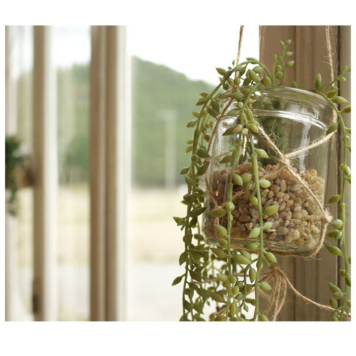 ・お洒落なガラスジャーから垂れ下がる、みずみずしいグリーンのツルがお部屋を爽やかな雰囲気に演出。