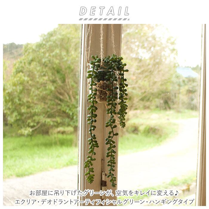 ・お部屋に吊り下げたグリーンが、空気をキレイに変える♪エクリア・デオドラントアーティフィシャルグリーン・ハンギングタイプ。