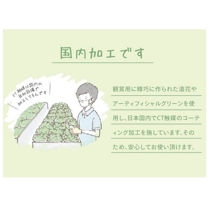 ・葉の表面に「CT触媒加工」が施された機能的なアイテム。お部屋の消臭効果だけでなく、抗菌作用で細菌やカビの増殖も防止!