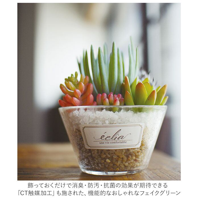 多肉植物 観葉植物 フェイク l 通販 おしゃれ 小さい CT触媒 消臭アーティフィシャルグリーン ECLIA エクリア インテリアグリーン 寄せ植え ポット フェイクグリーン インテリア 人工植物 枯れない コンパクト キャニスター 玄関 靴箱 雑貨 造花 KH-6118 人工観葉植物