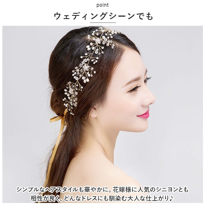 ・キラッと光るビジューや、可愛らしいイミテーションパールが印象的。アップスタイルにもダウンスタイルにもマッチ☆