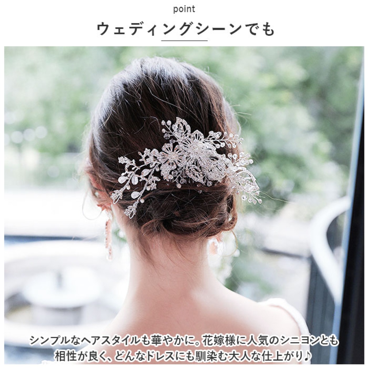 ・シンプルなヘアスタイルも華やかに。花嫁様に人気のシニヨンとも相性が良く、どんなドレスにも馴染む大人な仕上がり♪