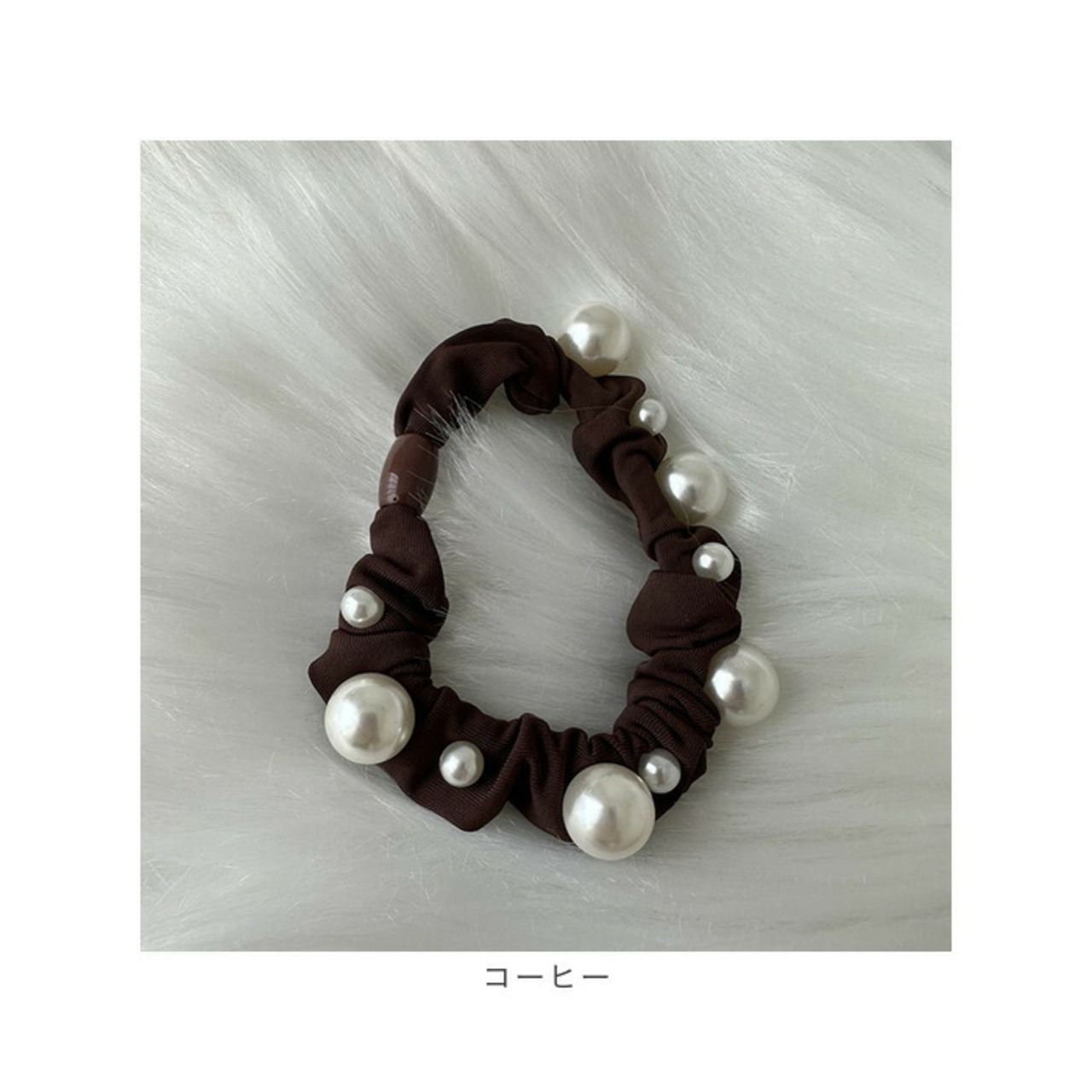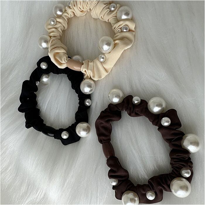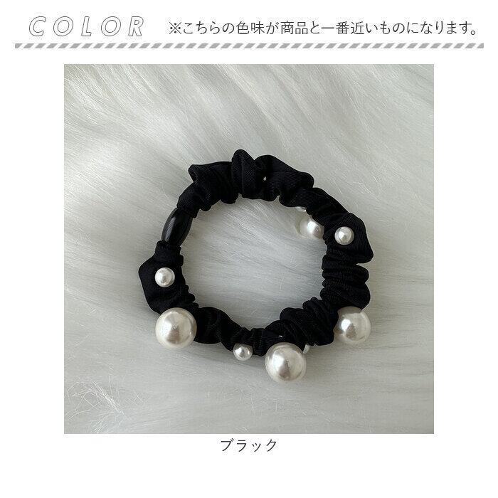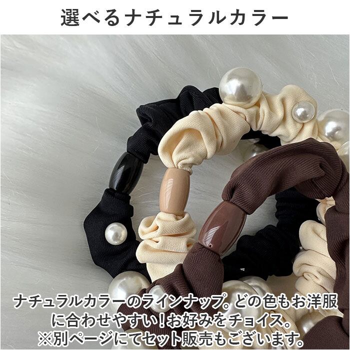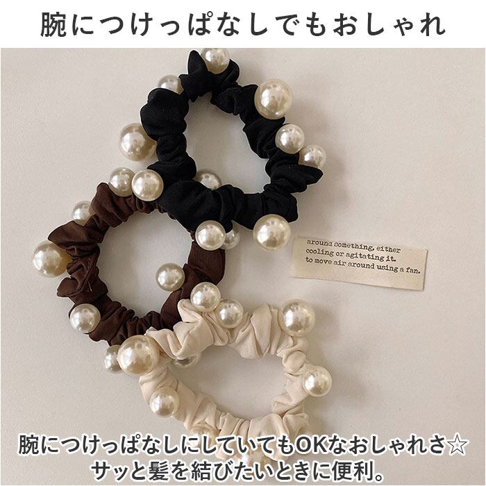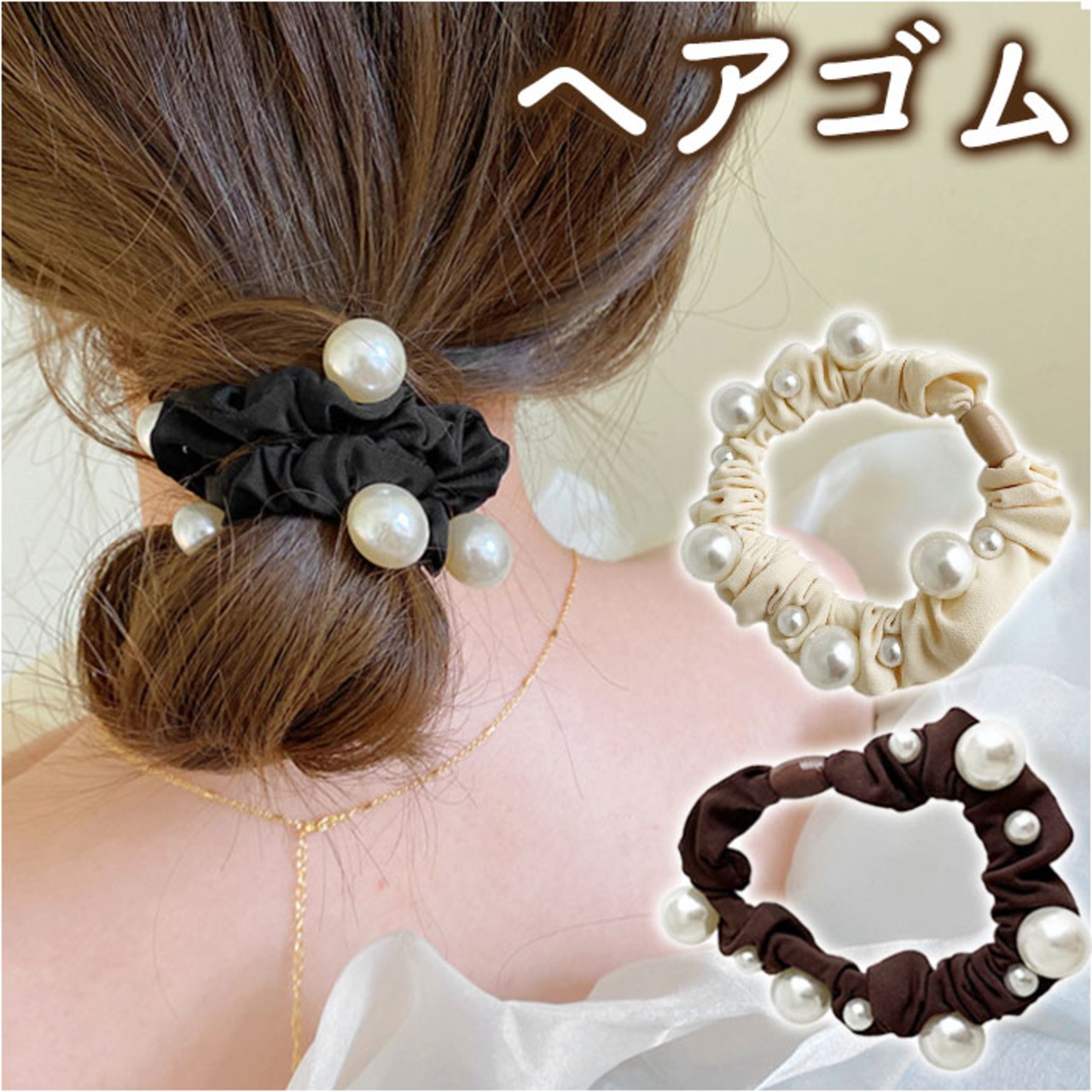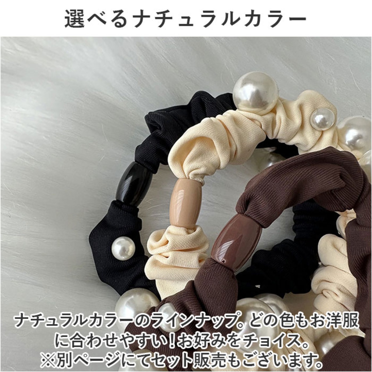 ・シュシュ×パール風で、無造作に結ぶだけでおしゃれに仕上がる♪お仕事もお休みも使える◎