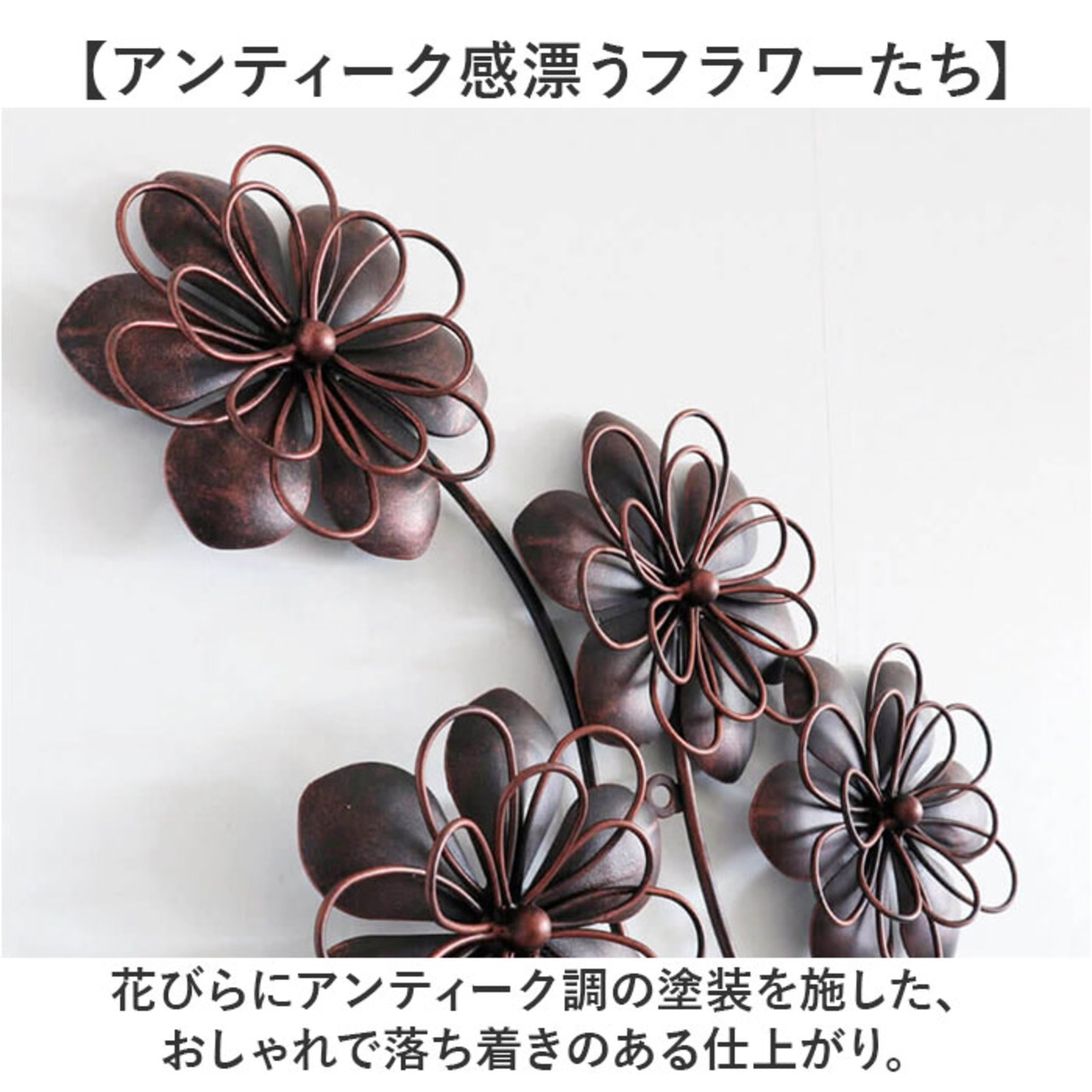 ・花びらにアンティーク調の塗装を施した、おしゃれで落ち着きのある仕上がり。
