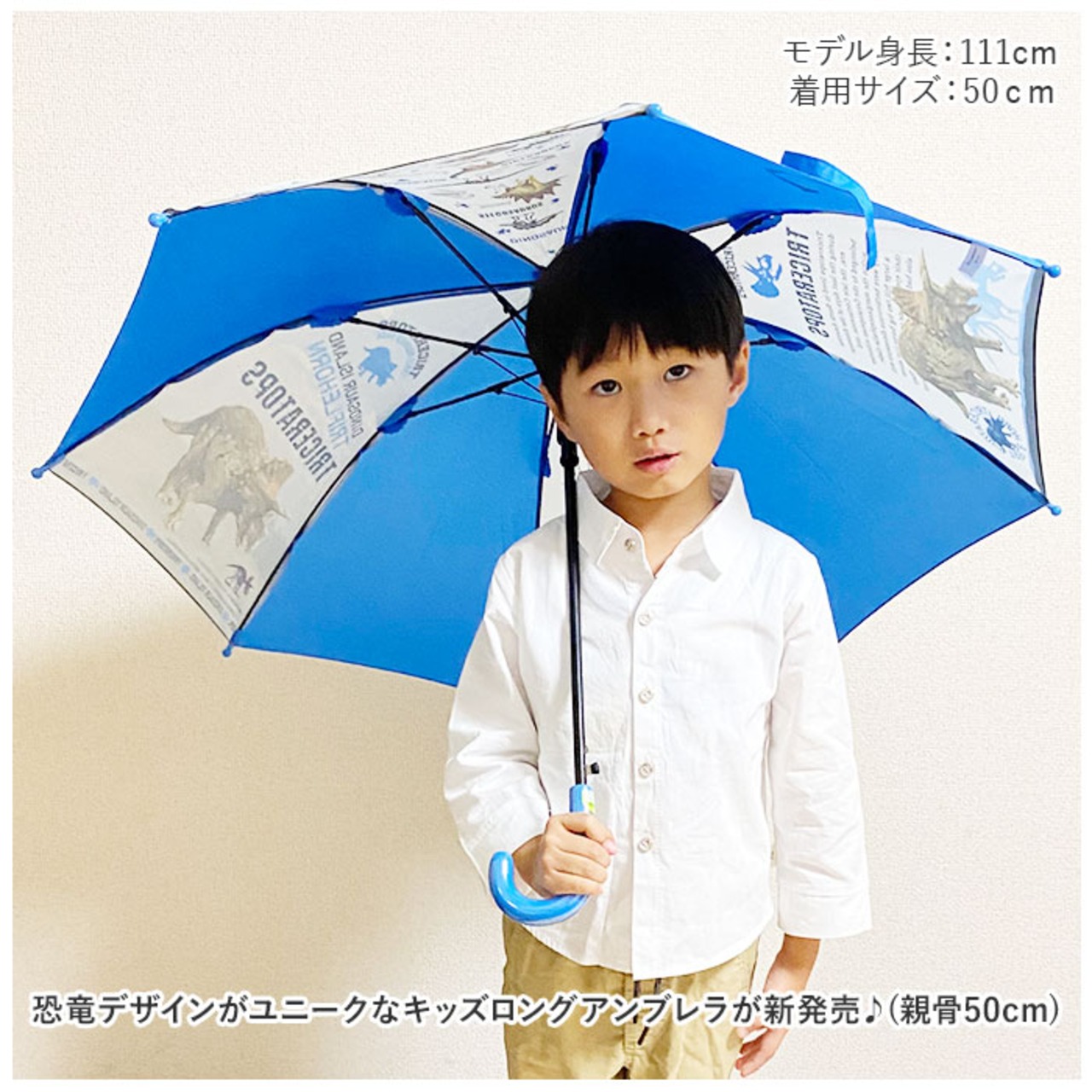 ・恐竜デザインがユニークなキッズロングアンブレラが新発売♪(親骨50cm)