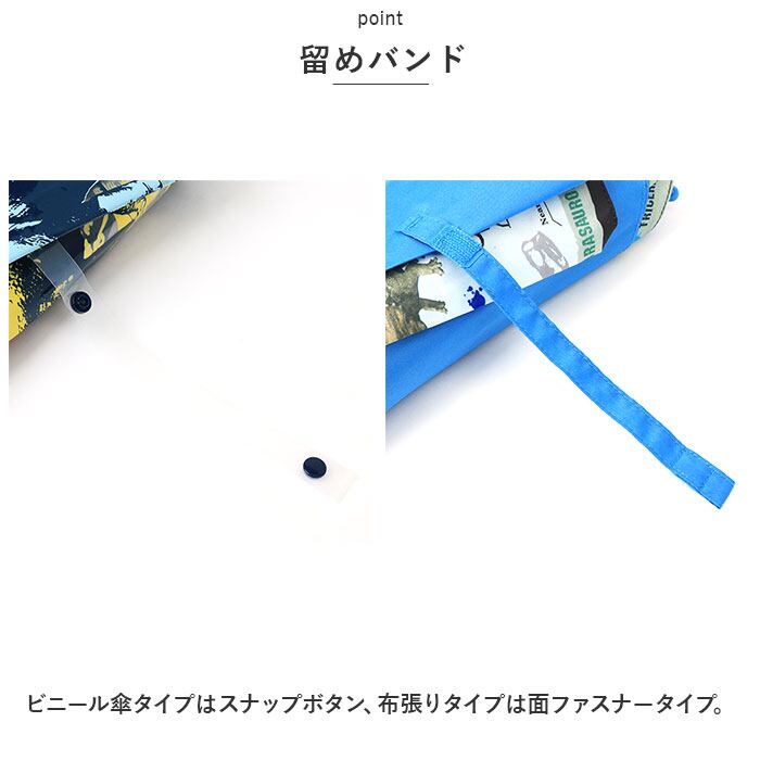 ・ビニール傘タイプはスナップボタン、布張りタイプは面ファスナータイプ。