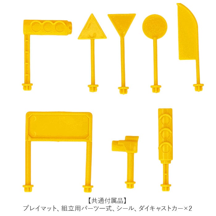 ・プレイマット、組立用パーツ一式、シール、ダイキャストカー×2