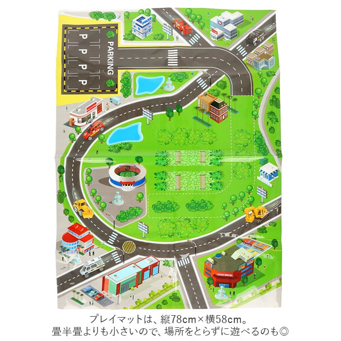 ・プレイマットは、縦78cm×横58cm。畳半畳よりも小さいので、場所をとらずに遊べるのも◎