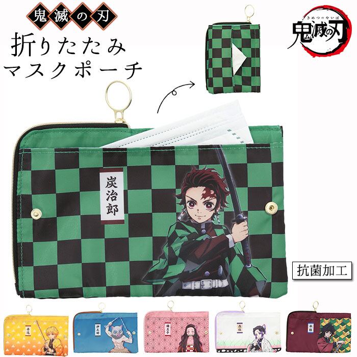 ・大人気のTVアニメ「鬼滅の刃」のキャラクターがデザインされた、折りたたみマスクポーチが新登場!