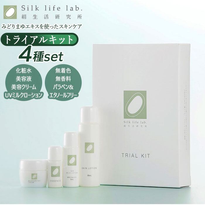 基礎化粧品セット 通販 トライアルキット トライアル お試し 4種 セット コスメ スキンケア 化粧水 美容液 クリーム 日焼け止め UV オーガニック 無添加 敏感肌 低刺激 保湿 シルク 乾燥肌 絹生活研究所公式