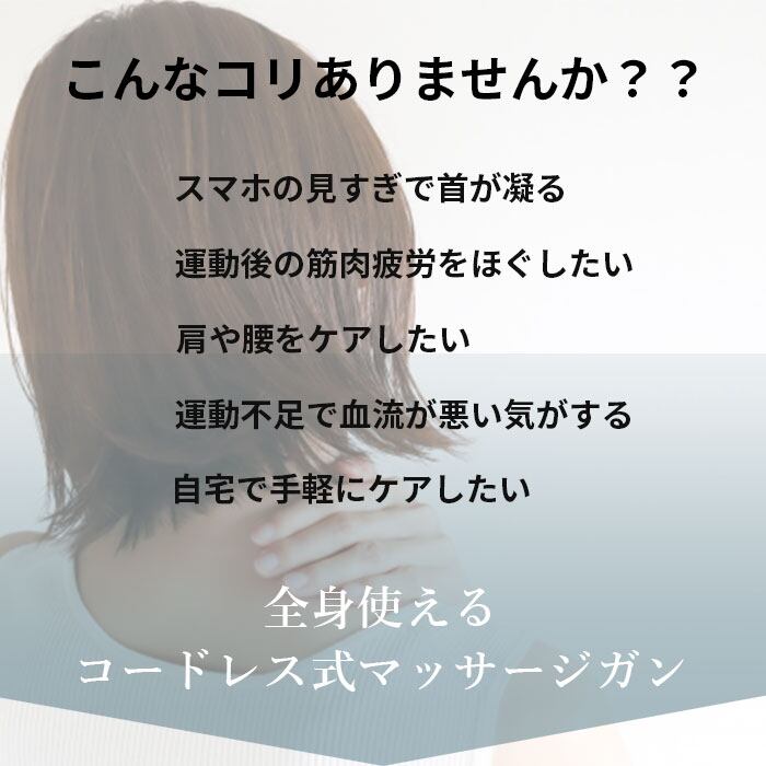 ・いつでもどこでも手軽にセルフマッサージができる、コードレス式マッサージガン。