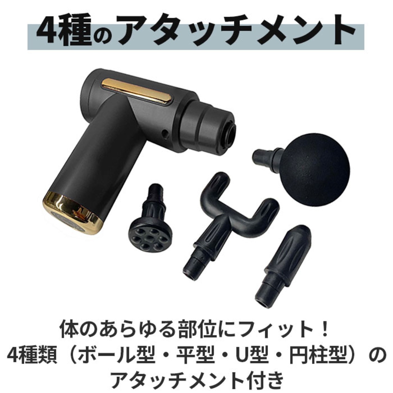 ・体のあらゆる部位にフィット!4種類(ボール型・平型・U型・円柱型)のアタッチメント付き。