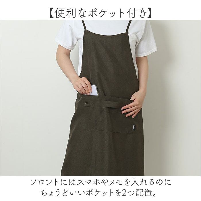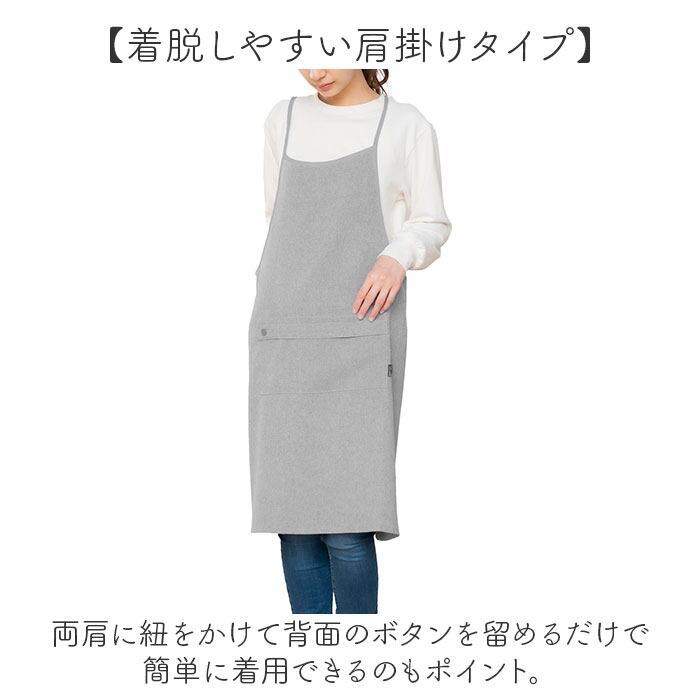 ・日常使いしやすく、気楽に着られることにこだわったデザインのエプロン。