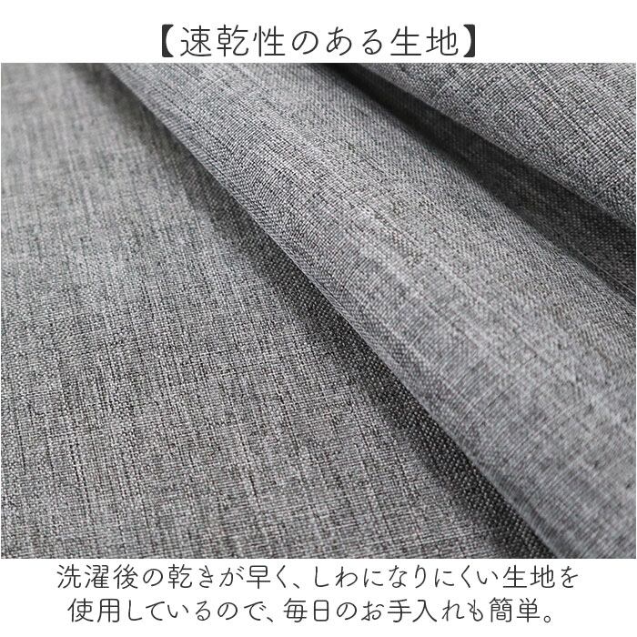 ・洗濯後の乾きが早く、しわになりにくい生地を使用しているので、毎日のお手入れも簡単。