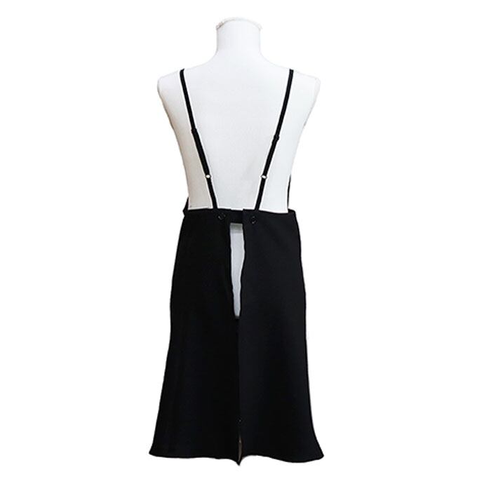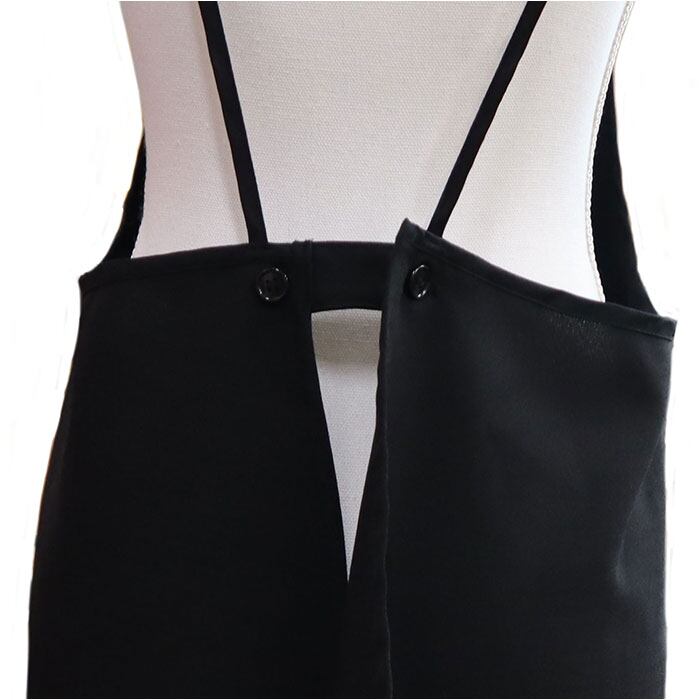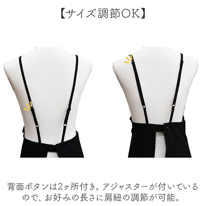 ・両肩に紐をかけて背面のボタンを留めるだけで簡単に着用できるのもポイント。
