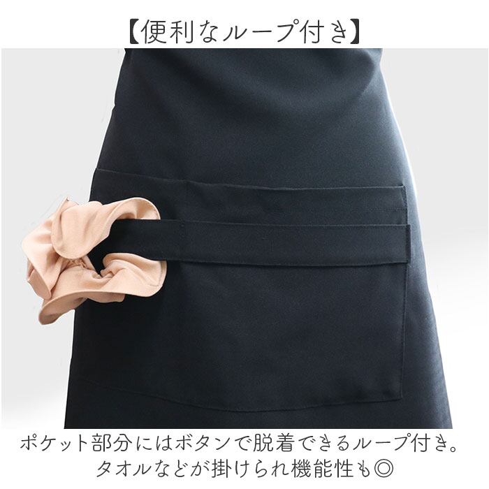 ・ポケット部分にはボタンで脱着できるループ付き。タオルなどが掛けられ機能性も◎
