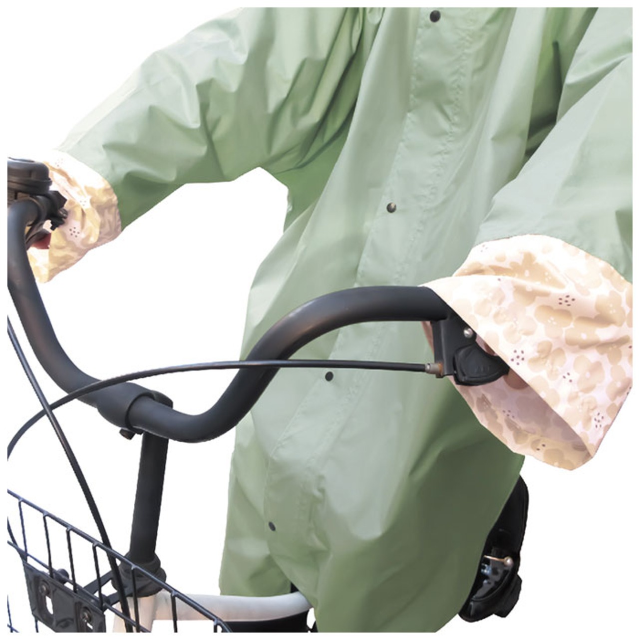 ・二重になったゴム入り袖で雨の侵入をブロック!大きめの袖が手首まわりをハンドルごとカバーして、雨の冷たさ気にならない♪