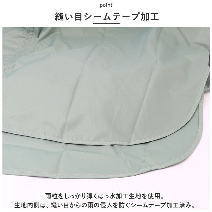 ・雨粒をしっかり弾くはっ水加工生地を使用。生地内側は、縫い目からの雨の侵入を防ぐシームテープ加工済み。