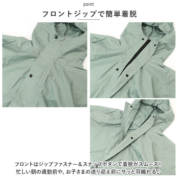 ・長めの裾デザインでボトムスや靴が雨に濡れにくく、左右に設けたスリットが足さばきを妨げないのもポンチョスタイルのメリット!