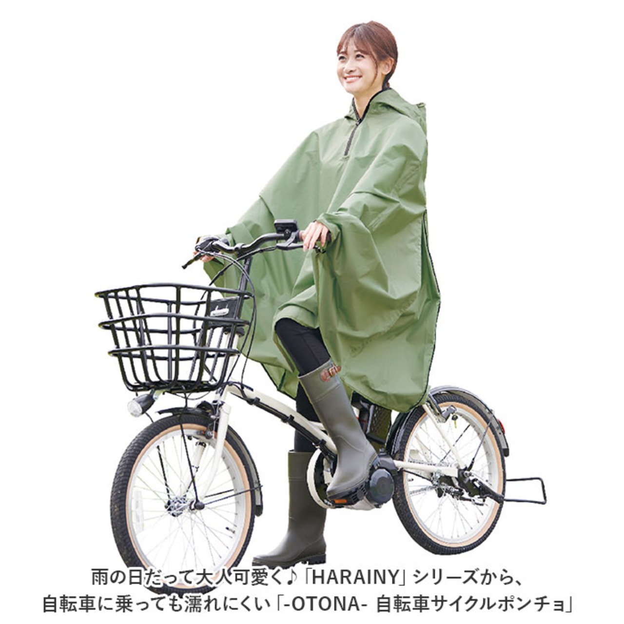 ・雨の日だって大人可愛く♪「HARAINY」シリーズから、自転車に乗っても濡れにくい「-OTONA- 自転車サイクルポンチョ」が新登場。