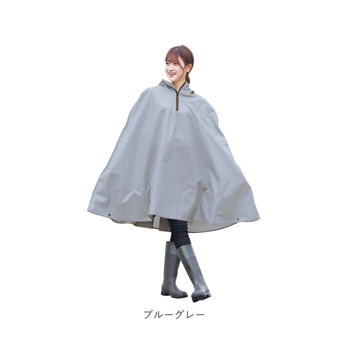 ・ポンチョならではのワイドシルエットが身体をすっぽり覆って、雨風からしっかりガード。スナップボタンで袖口のように手首にフィット!