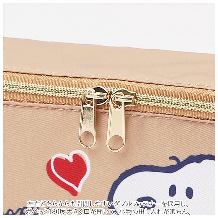 ・「PEANUTS」など、世界中の人々から愛される大人気キャラクターの絵柄に、ゴールドのファスナーが華やかに引き立つデザインも魅力。