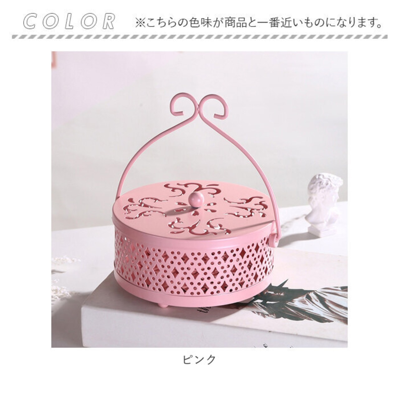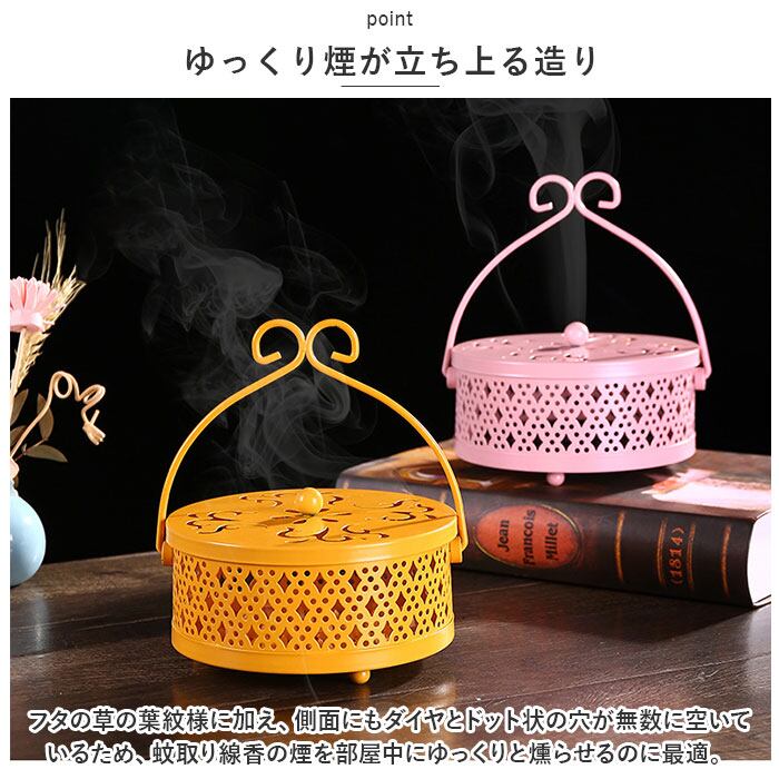 ・フタの草の葉紋様に加え、側面にもダイヤとドット状の穴が無数に空いているため、蚊取り線香の煙を部屋中にゆっくりと燻らせるのに最適。