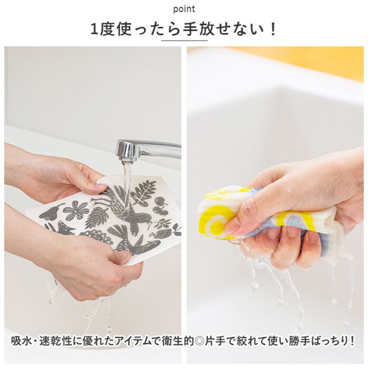 ・吸水・速乾性に優れたアイテムで衛生的◎片手で絞れて使い勝手ばっちり!