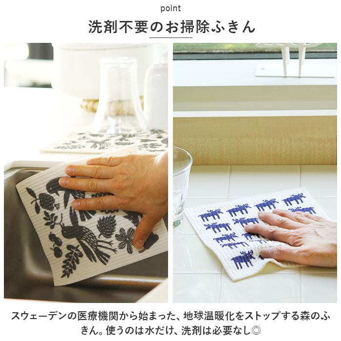 ・スウェーデンの医療機関から始まった、地球温暖化をストップする森のふきん。使うのは水だけ、洗剤は必要なし◎