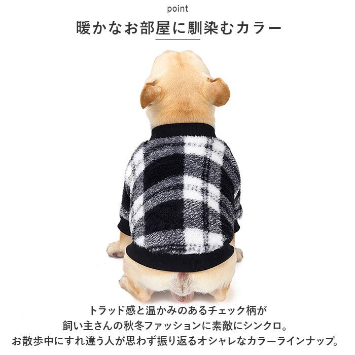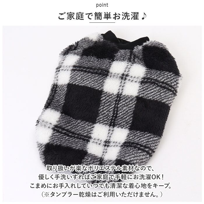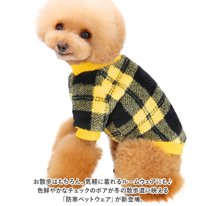 ・お散歩はもちろん、気軽に着れるルームウェアにも♪色鮮やかなチェックのボアが冬の散歩道に映える「防寒ペットウェア」が新登場。