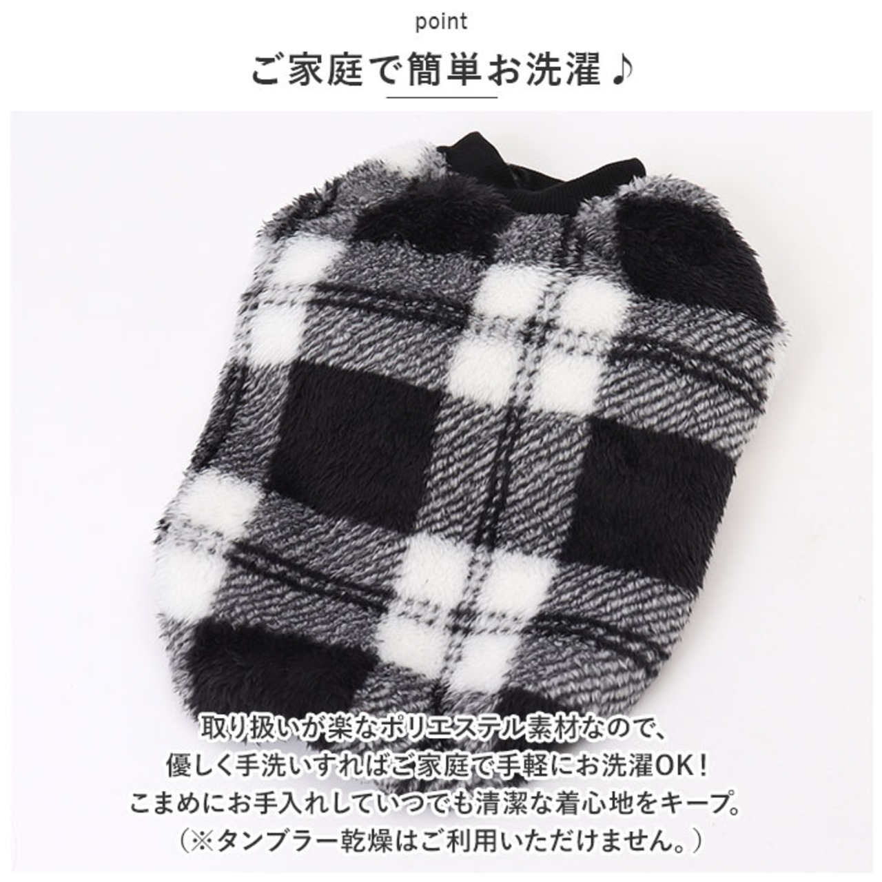 ・たっぷりと毛足の豊かなボア素材が、ワンちゃんの身体の周りの暖かな空気をしっかりとキープしてくれるので、保温性抜群!