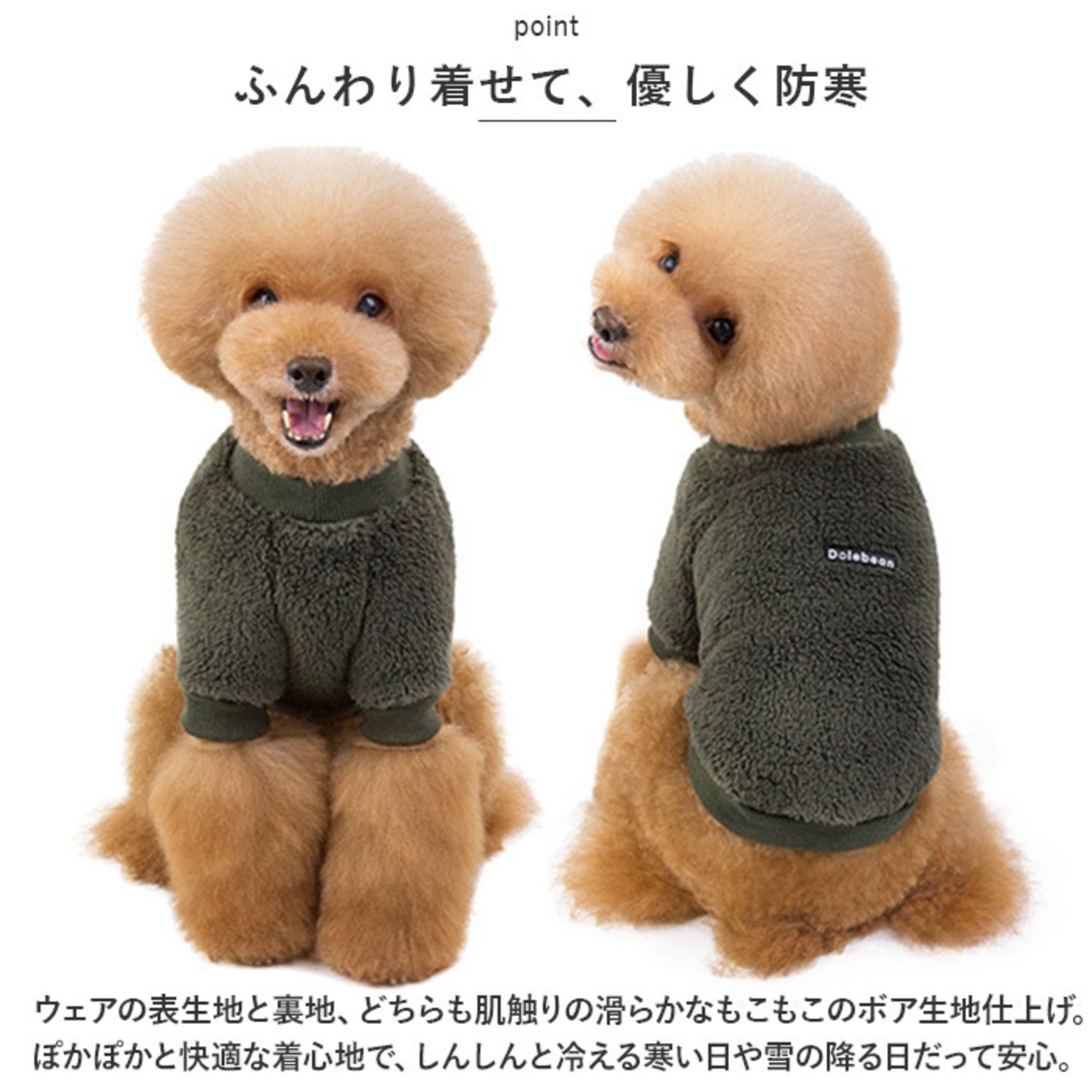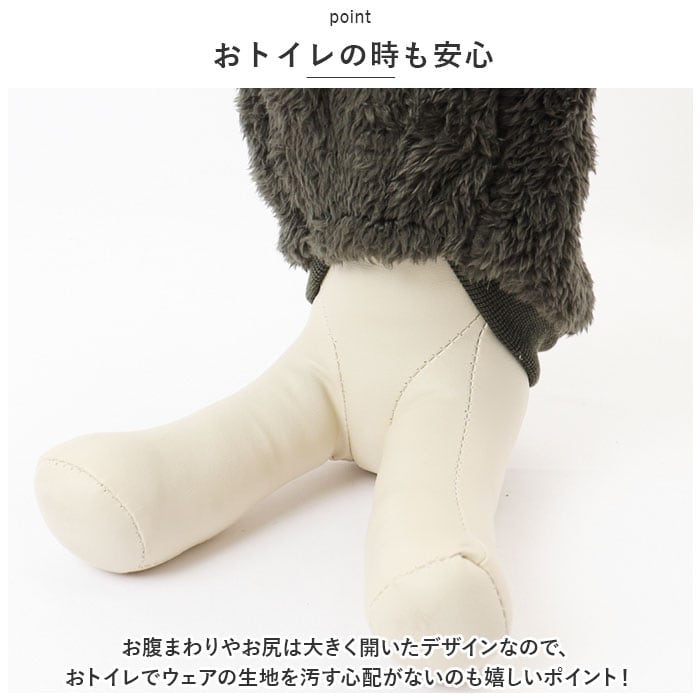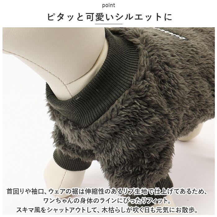 ・たっぷりと毛足の豊かなボア素材が、ワンちゃんの身体の周りの暖かな空気をしっかりとキープしてくれるので、保温性抜群!